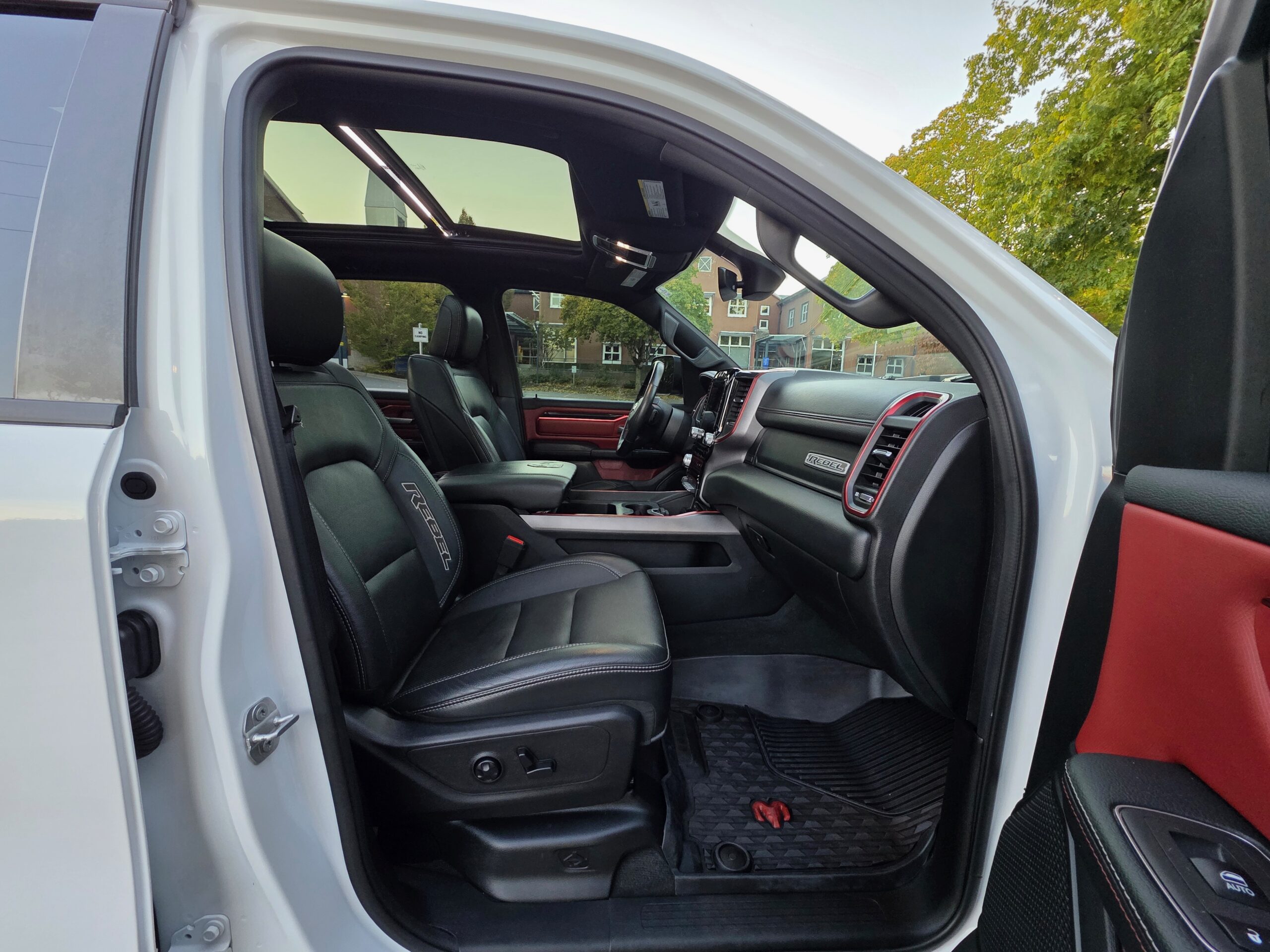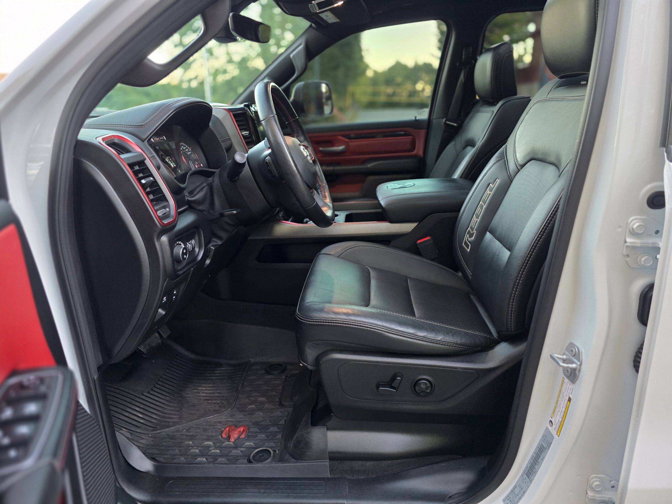 Luxury Leather-Faced Front Bucket Seats with Dark Ruby Red Accents